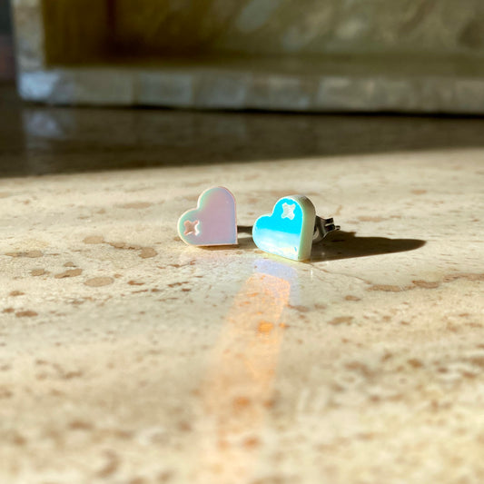 Green Marble Clover Quatrefoil Earrings with Gold Leaf Stud