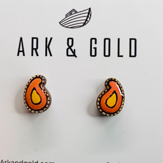 Indian Henna Kaju Studs- Handmade Wood Earrings