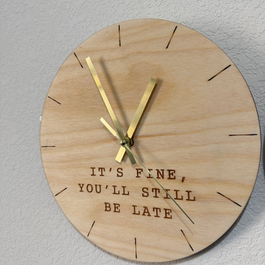 Handmade Round Funny Wall Clock for someone who is always late- Silent - Handmade with Wood